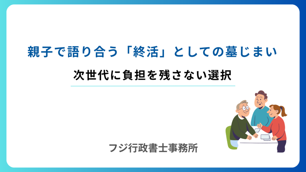 墓じまいは「片づけ」ではなく、ご家族それぞれの想いに向き合う大切な節目です。行政書士として法的な側面だけでなく、ご家族の意向や供養の形も大切にしながら、納得できる方法を一緒に探していきます。