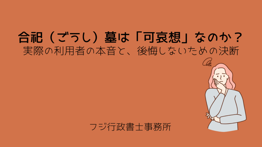 「墓じまいを考えているけれど、合祀(ごうし)にするのはご先祖様が可哀想な気がして…」 行政書士として墓じまいのご相談を受ける中で、最も多く耳にするのがこの悩みです。 お墓を片付けること自体は決めていても、「遺骨を他人と一緒に埋葬する」という... -