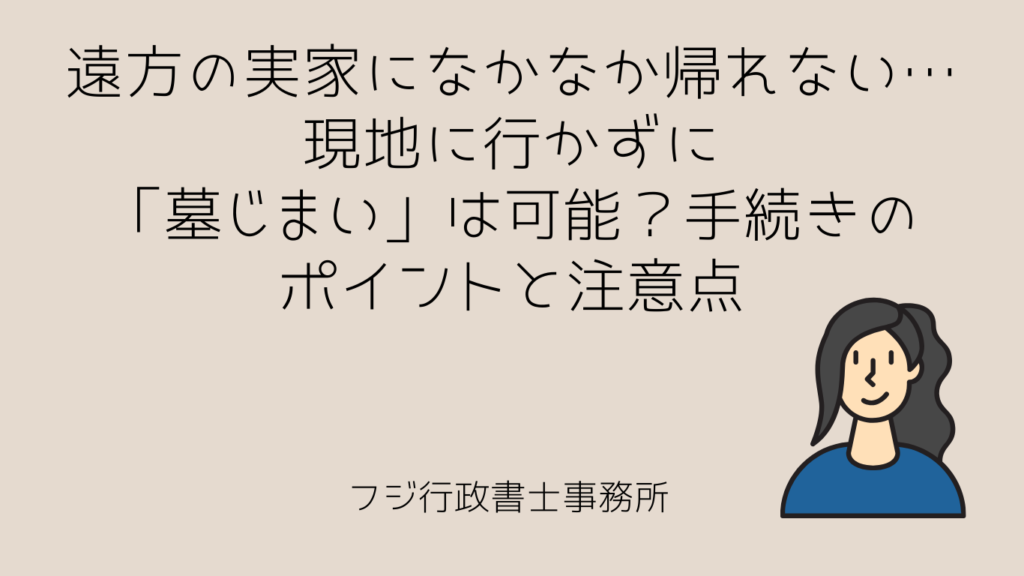「実家のお墓が遠方にあって、なかなか管理に行けない」 「高齢になり、お墓参りのための長距離移動が辛くなってきた」 「仕事が忙しく、役所の手続きのために平日に休みが取れない」 当事務所には、このようなご相談をいただくことが増えています。 お墓... -